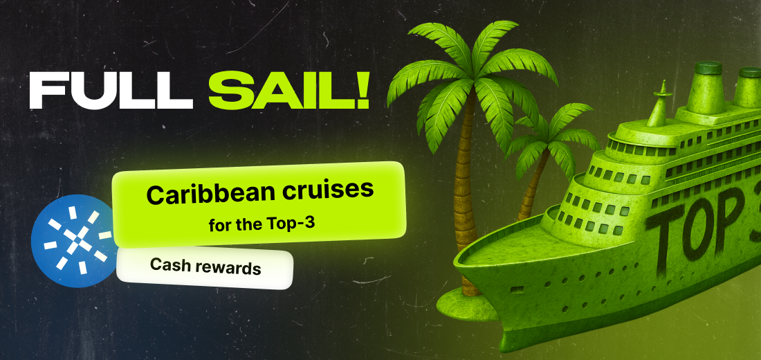 A todo vapor: os 3 afiliados com o maior número de FTDs entre 6 de novembro e 15 de dezembro ganharão uma experiência exclusiva de cruzeiro no Caribe para duas pessoas! Os próximos 7 serão premiados com prêmios em dinheiro.